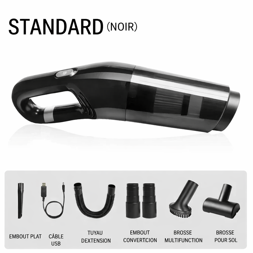 Cet aspirateur à main sans fil est conçu pour éliminer la poussière et les débris du quotidien, comme les miettes, les restes d'aliments secs et les petits dégâts. Nettoyez facilement les plans de travail, les tables, les tissus d'ameublement, les recoins et l'intérieur de votre voiture grâce aux trois accessoires inclus : une brosse à poussière, un suceur plat et une brosse motorisée pour animaux.